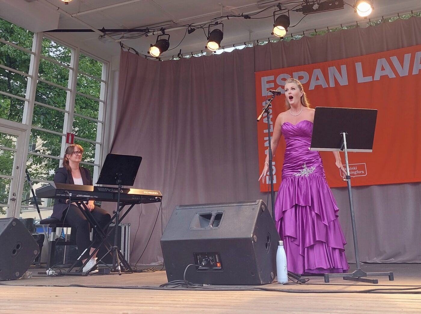 Espan lavan kulttuurituottaja koki hienoisia kauhunhetkiä heinäkuun puolivälissä. Kuningasbasso Jaakko Ryhäsen ja huipputenori Jyrki Anttilan esitys jouduttiin siirtämään elokuulle sairastumisen vuoksi. Onneksi vuorokauden varoajalla hätiin saapui valovoimainen laulajatar Marika Hölttä. Monisatapäinen yleisö sai nauttia säkenöivästä sopraanolaulannasta ja koloratuurien kimalluksesta.
