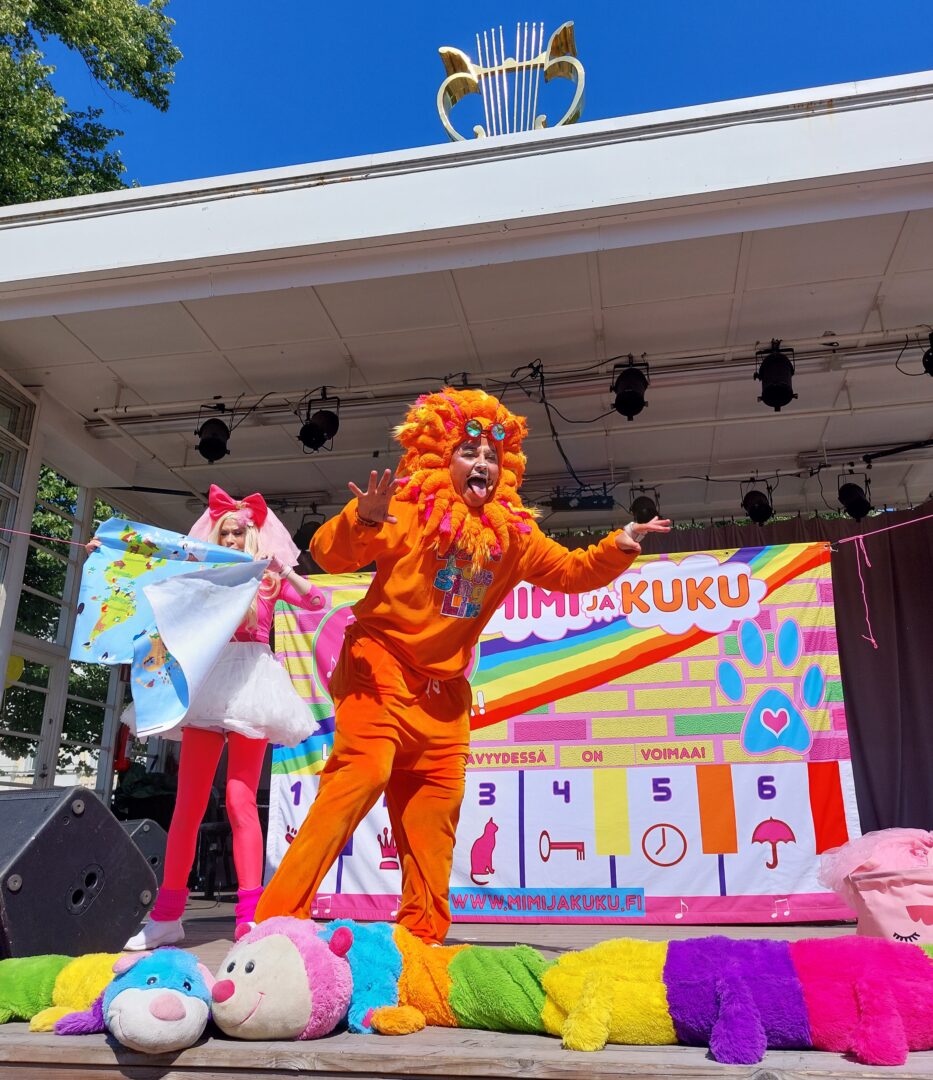 Englanninkielisessä lastenpäivässä esiintyivät kestosuosikit Mimi & Kuku, tietenkin in English. Ihania Disney-melodioita kuultiin Jazz for Kids – Elena Mindru -konsertissa, ja saippuakuplakone posotti puiston täyteen pirskahtelevaa taikaa.