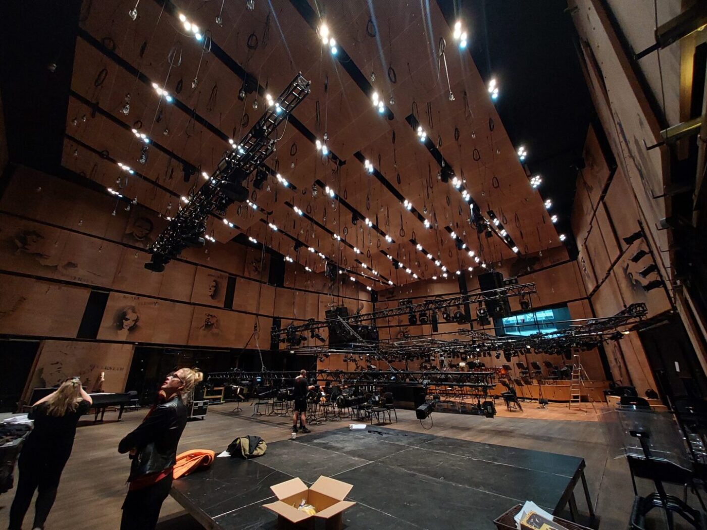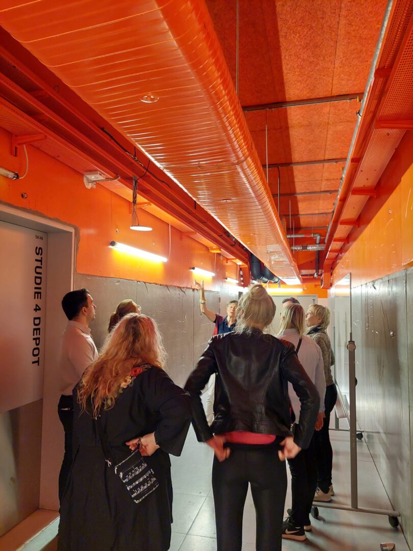 Matkan viimeisenä päivänä lähdimme vielä tutustumaan DR Koncerthusetiin eli Tanskan Yleisradion konserttitaloon. Yleisradion kuorossa aiemmin työskennellyt opas esitteli meille kattavasti teollismodernia rakennusta ja sen tiloja. Niin aulatilat kuin henkilökunnankin tilat olivat vahvaa industrial-tyyliä betoniseinineen. Yleisilmeeltään harmaahkoa väritystä ja avoimia tiloja piristivät rohkeat kirkkaat värit. Meitä tietenkin kiinnostivat erilaiset tuotannolliset tilat, pukuhuoneista harjoitussaliin ja talon pienempään muunneltavaan näyttämöön sekä moderniin sinfonia-orkesterille tehtyyn konserttisaliin. Talo tiloineen oli uusinta tekniikkaa ja tiloissa oli hyödynnetty monia luovia ja uusia innovaatioita. Vaikka talo oli kovin eri tyyppinen ja eri mittakaavassa omaan Savoy-teatteriimme verrattuna, löytyi täältäkin inspiraation aihetta.